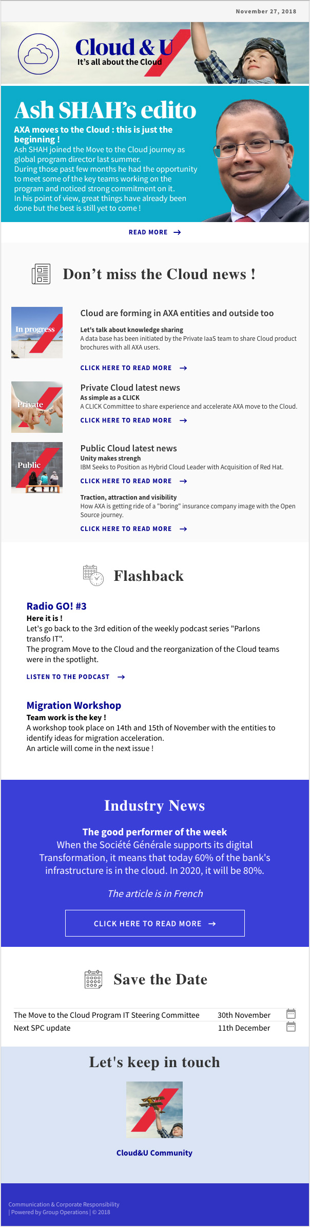 Finish your newsletter (change the picture and finish the texts) on outlook and send your email via outlook or a mass mailing tool
